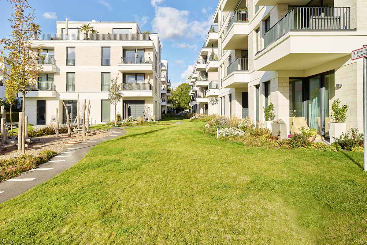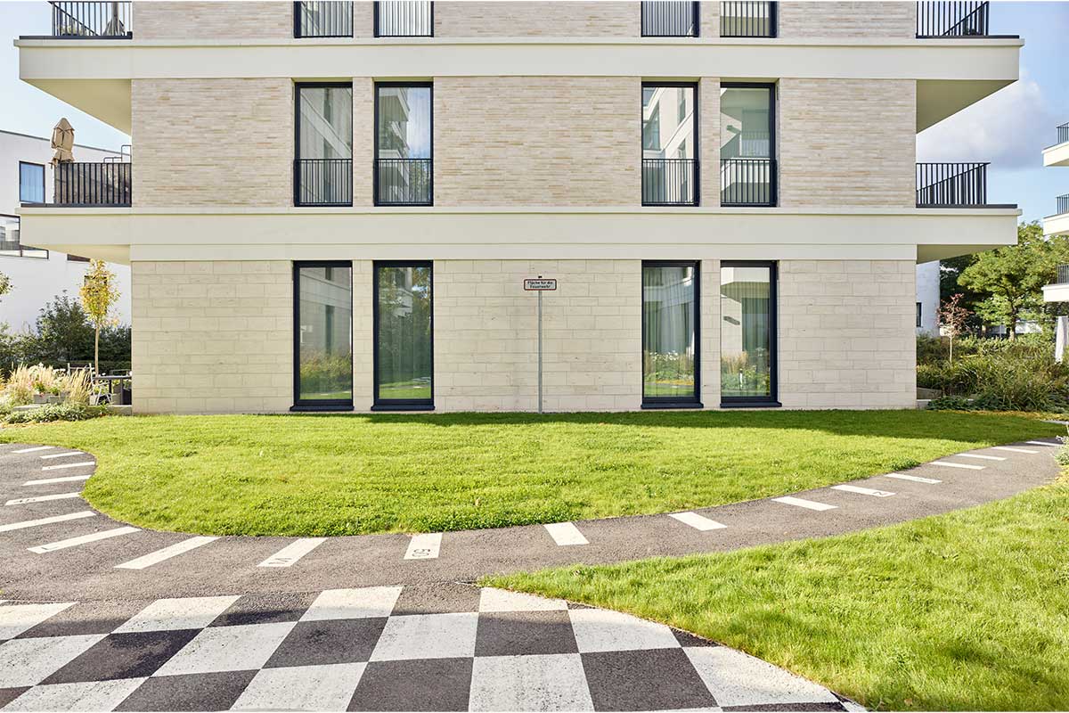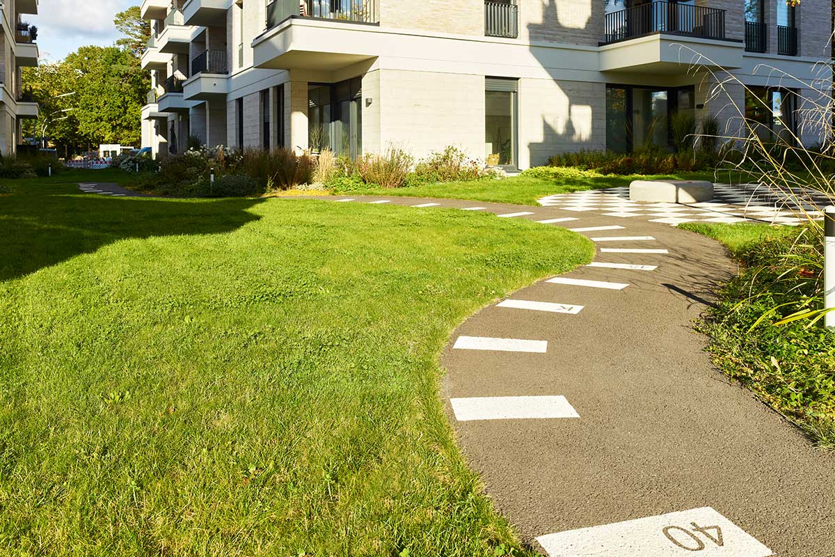 Das Wohnquartier Fünf Morgen Berlin verfügt über ein DGNB-Zertifikat für umweltfreundliches Bauen in Gold - als erstes Wohnprojekt in Berlin überhaupt. Passend dazu wurden die Feuerwehrzufahrten mit dem klimaneutralen TTE® System umgesetzt.
