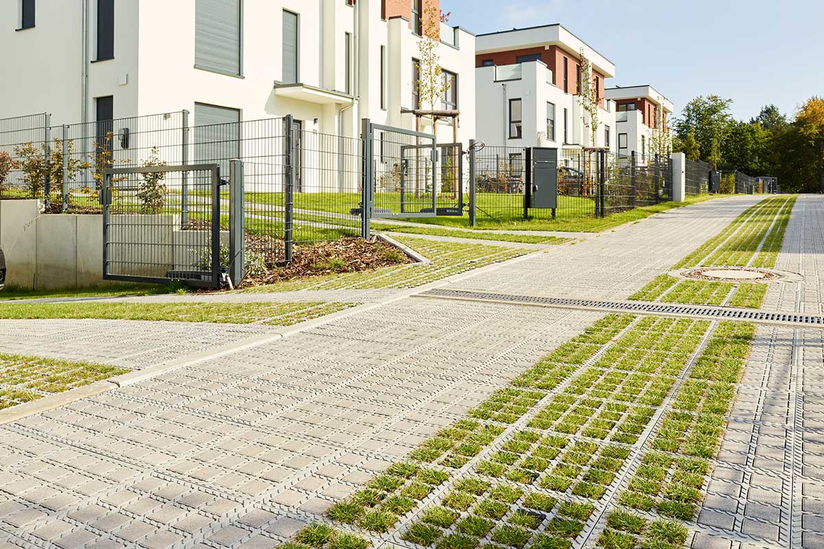Unversiegelte und ökologische Anliegerstraße im Neubauprojekt