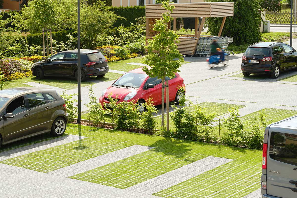 Nachhaltiger Parkplatz passend zum Gesamtkonzept