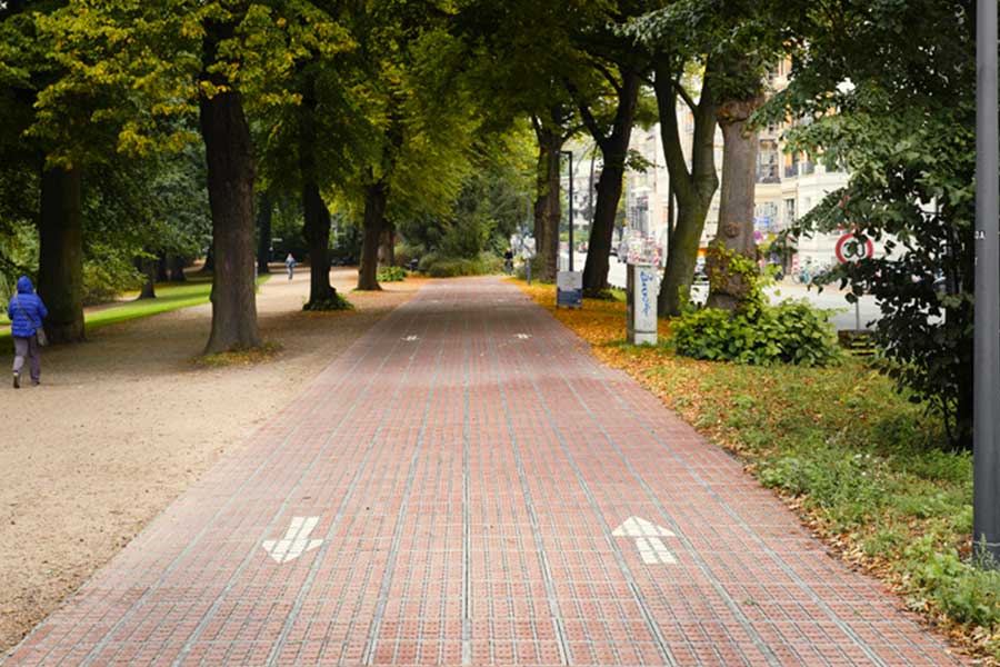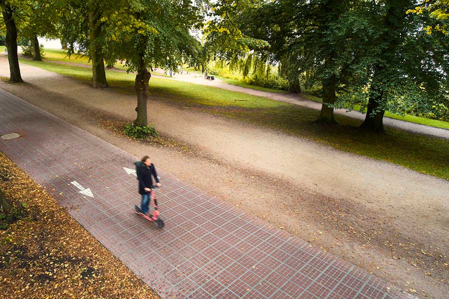 Die geringe Fugenbreite von TTE® ermöglicht ein angenehmes Fahrgefühl, während die lastverteilenden und unversiegelten Eigenschaften die Wurzeln der wertvollen Bestandsbäume schützen.