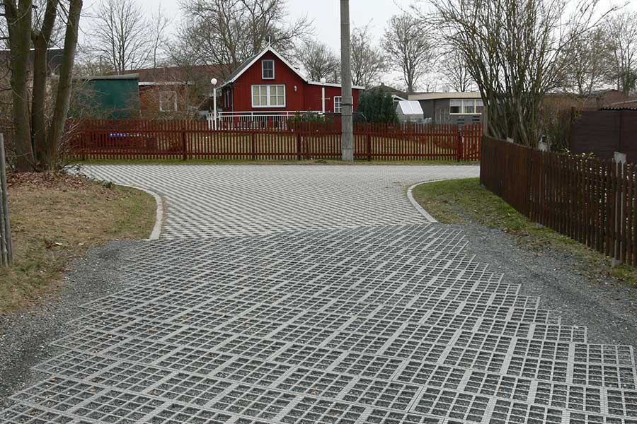 Anliegerstraßen können problemlos mit TTE® PFLASTER und sogar TTE® GRÜN befestigt werden.