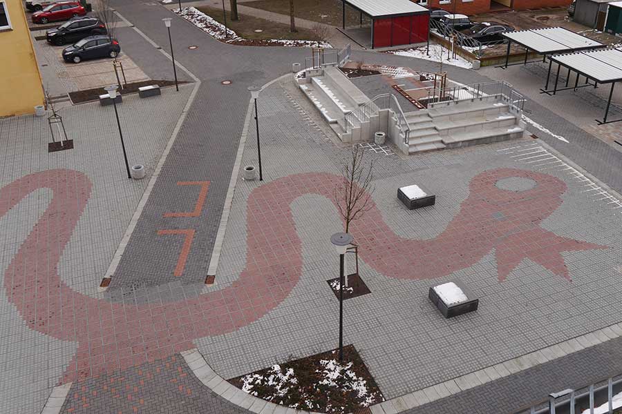Das Gymnasium in Wittenberg hat sich nicht nur auf Grund der versiegelungsfreien Lösung für TTE® entschieden. Überzeugt hat letztendlich auch die kreative Gestaltungmöglichkeit, in diesem Fall das Wappentier der Schule.