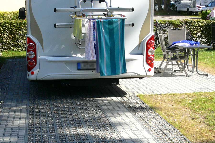 Der Familiencampingplatz Kühlungsborn hat sich für die nachhaltige und flexible Befestigung der Wohnmobilstellflächen mit dem TTE® System entschieden. Die Stabilisierung der Rasenfläche ohne diese zu Versiegeln stand dabei im Vordergrund. Die Fläche wird so vor Beschädigung durch die stehende Fahrzeuge geschützt und bleibt dabei wasserdurchlässig.