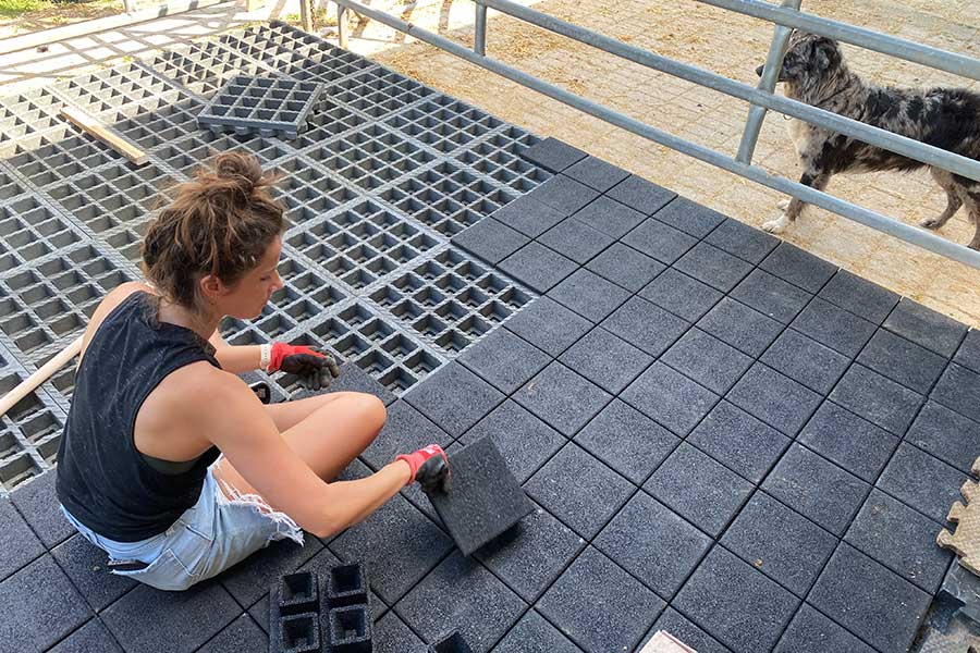 An einem Samstag im Juni ist es dann so weit: die Boxenmatten und TTE® softPAVE werden in Olenas Box und dem angrenzenden Paddock verlegt.